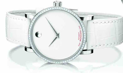 Movado präsentiert auch ein neues, neues Gesicht in seinem Red Label ™ Classic Museum® Automatic StrapFamilie: das White Classic Museum® mit Diamanten - eine Uhr, die für modebewusste Kunden konzipiert wurde, sowie eine Wertschätzung für die moderne Designästhetik von Movado und die komplizierte Handarbeit der mechanischen Zeitmessung. Das Gehäuse aus massivem Edelstahl mit polierter Oberfläche ist mit einer runden Lünette mit 76 Diamanten im Vollschliff (0,623 tcw) besetzt. Das makellose weisse Museums-Zifferblatt mit dezenten roten Buchstaben wird durch einen silbernen konkaven Punkt und Dauphine-Zeiger und ein feines weißes Armband aus echtem Alligator ergänzt. Im Zentrum dieser Uhr steht ein elegant gefertigtes Schweizer Automatikwerk mit speziell angefertigtem rotem "M" -Rotor, sichtbar durch den Saphirglas-Ausstellungskoffer.